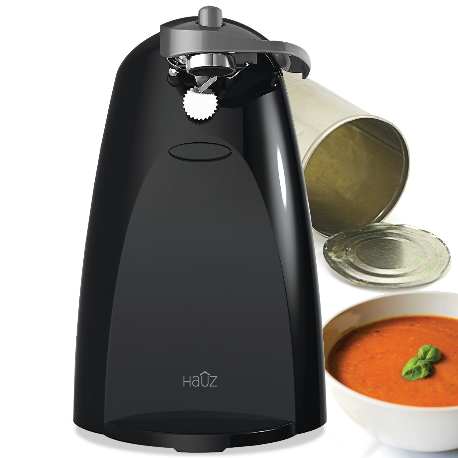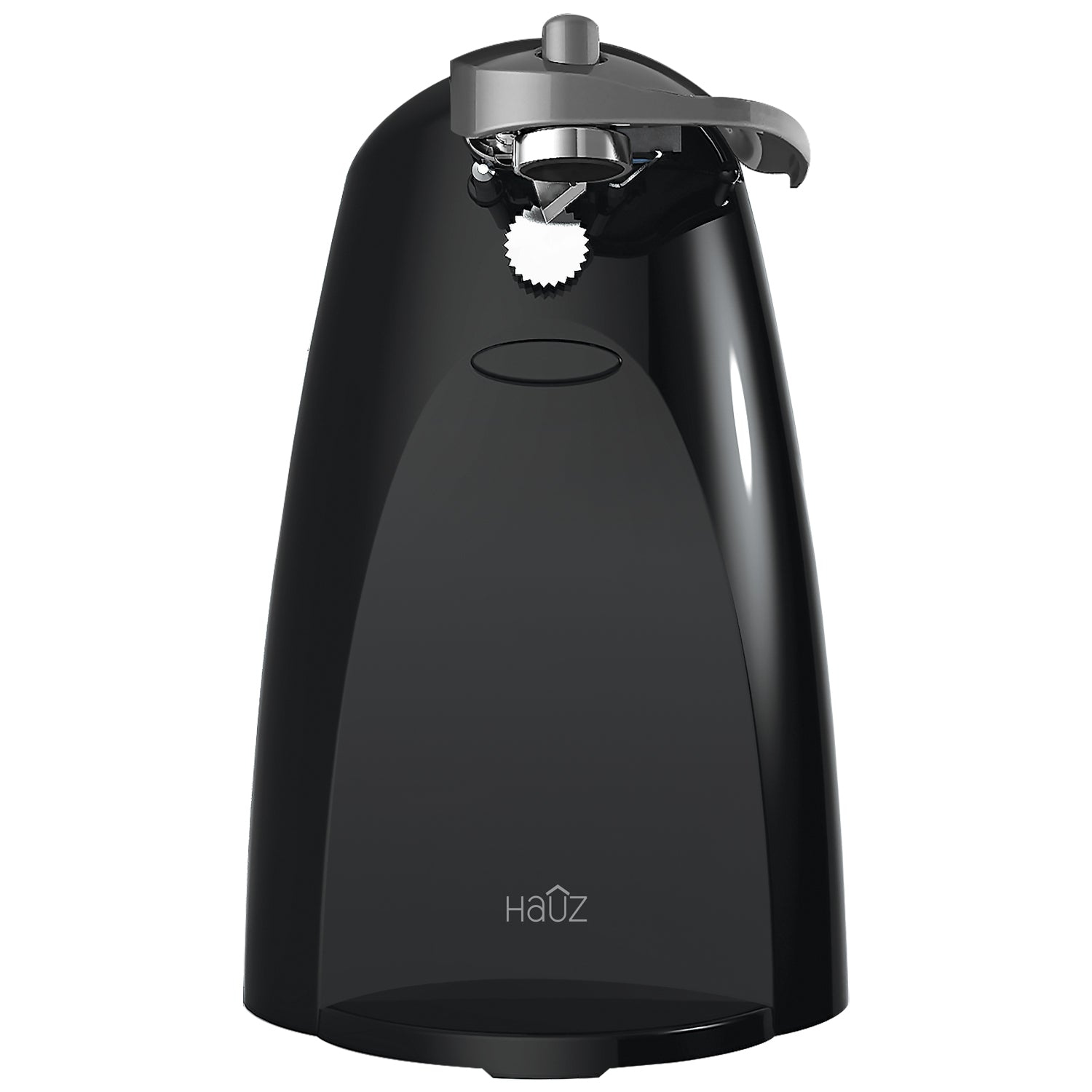 3-in-1 Can opener features ceramic knife sharpener, stainless steel blade, magnetic lid lifter, bottle opener, cord storage. 120VAC / 60Hz / 70W. Color - Black.